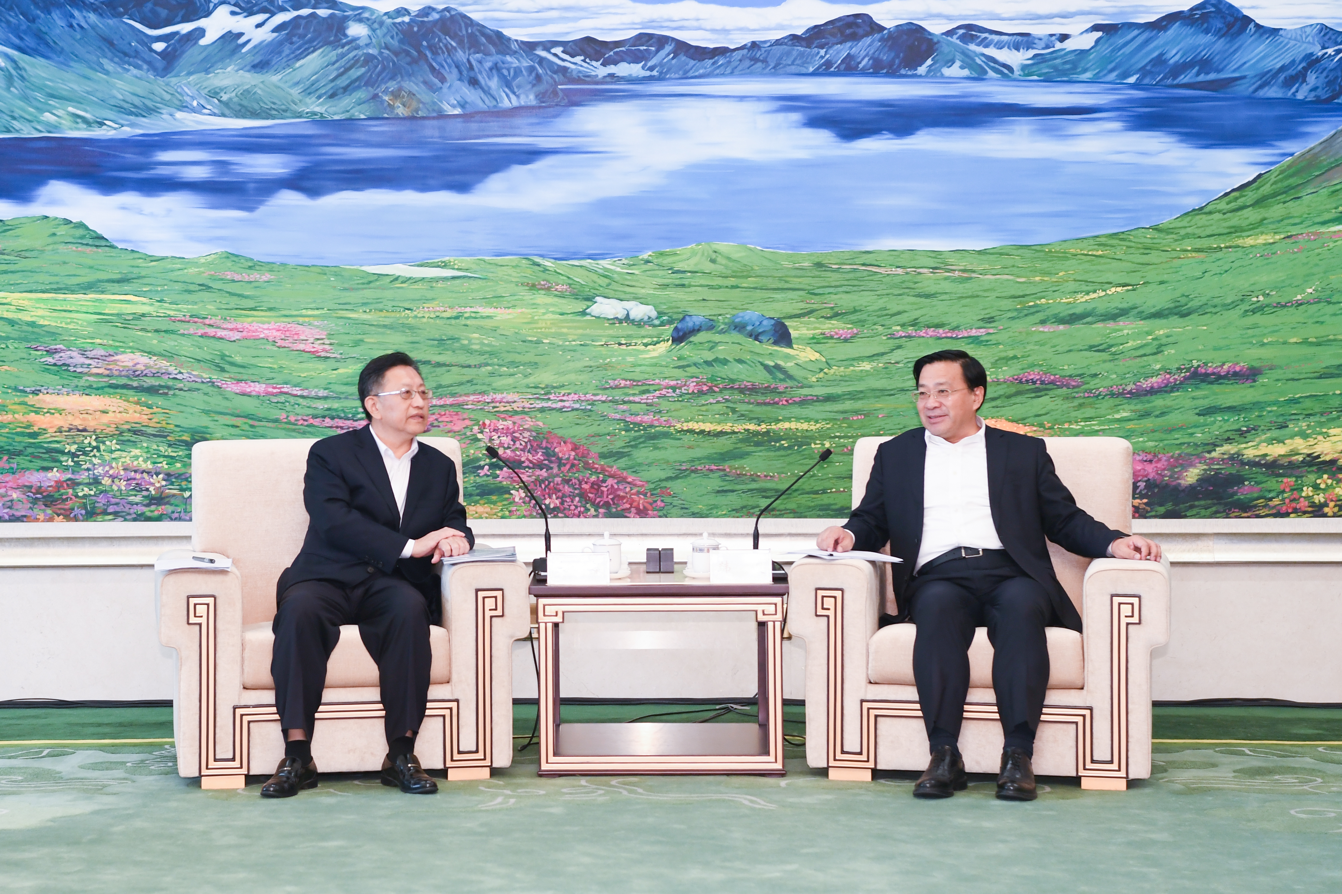 吉林省發(fā)改委、自然資源廳、生態(tài)環(huán)境廳、商務(wù)廳、能源局負責同志,集團公司總經(jīng)理助理曾武,辦公室、合作部,新時(shí)代集團、中地集團、風(fēng)電公司、生態(tài)產(chǎn)品研究中心、大地公司負責人參加會(huì )談。